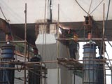 - 水泥廠使用大噸位液壓千斤頂將水泥磨頂升維修