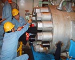 國(guó)電荊門(mén)熱電廠汽機(jī)給水泵螺栓M100驅(qū)動(dòng)式液壓扳手使用現(xiàn)場(chǎng) 高壓加熱器采用驅(qū)動(dòng)式液壓扳手進(jìn)行螺栓拆卸